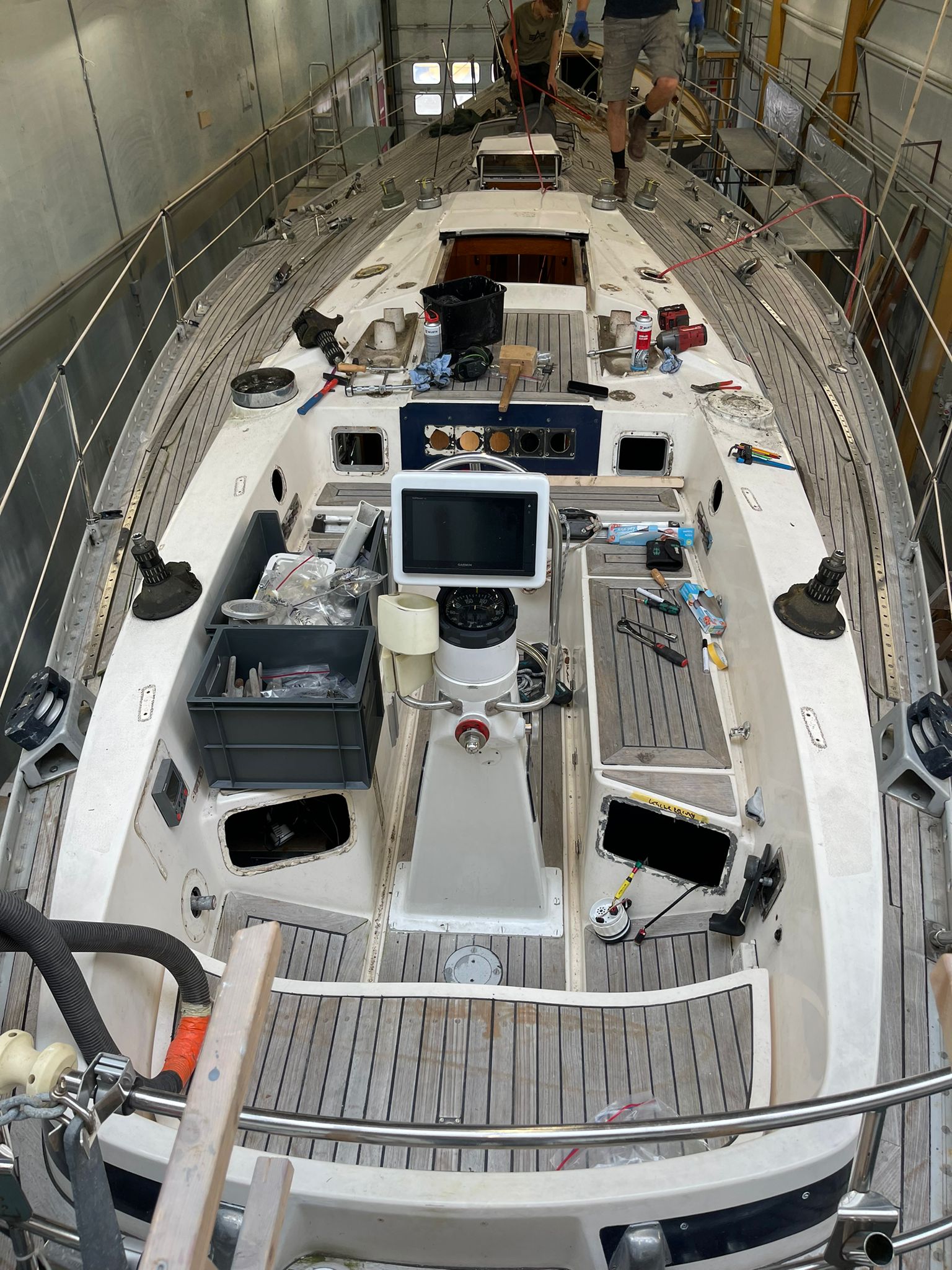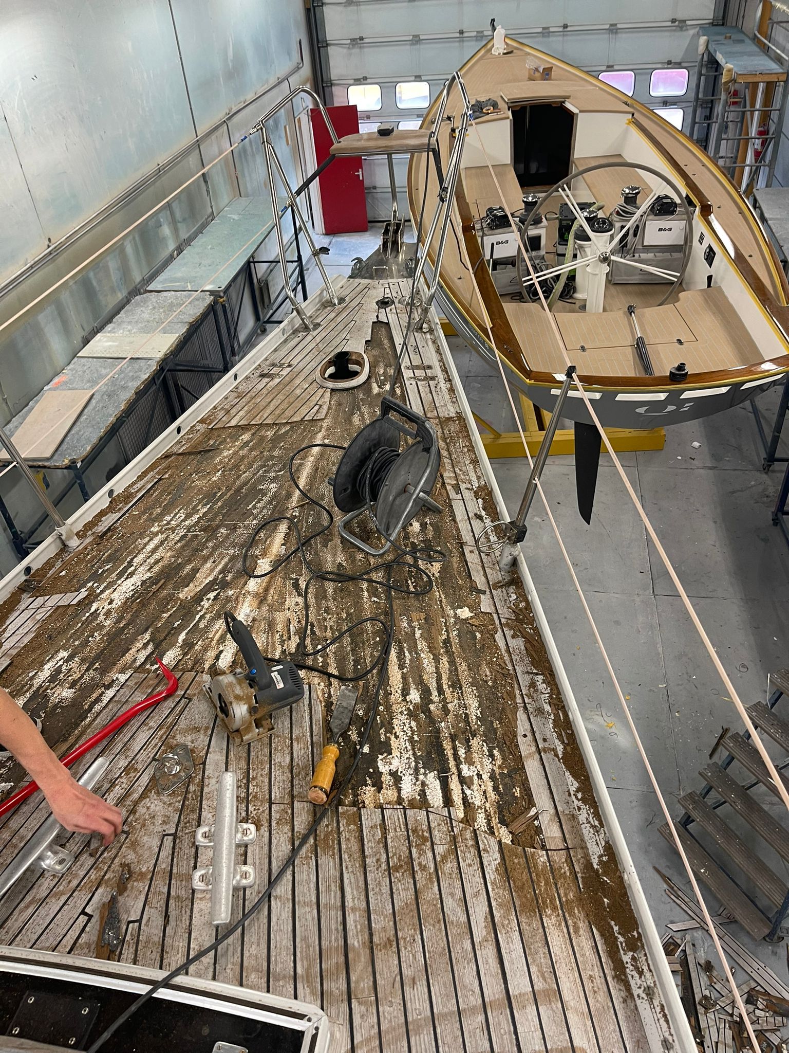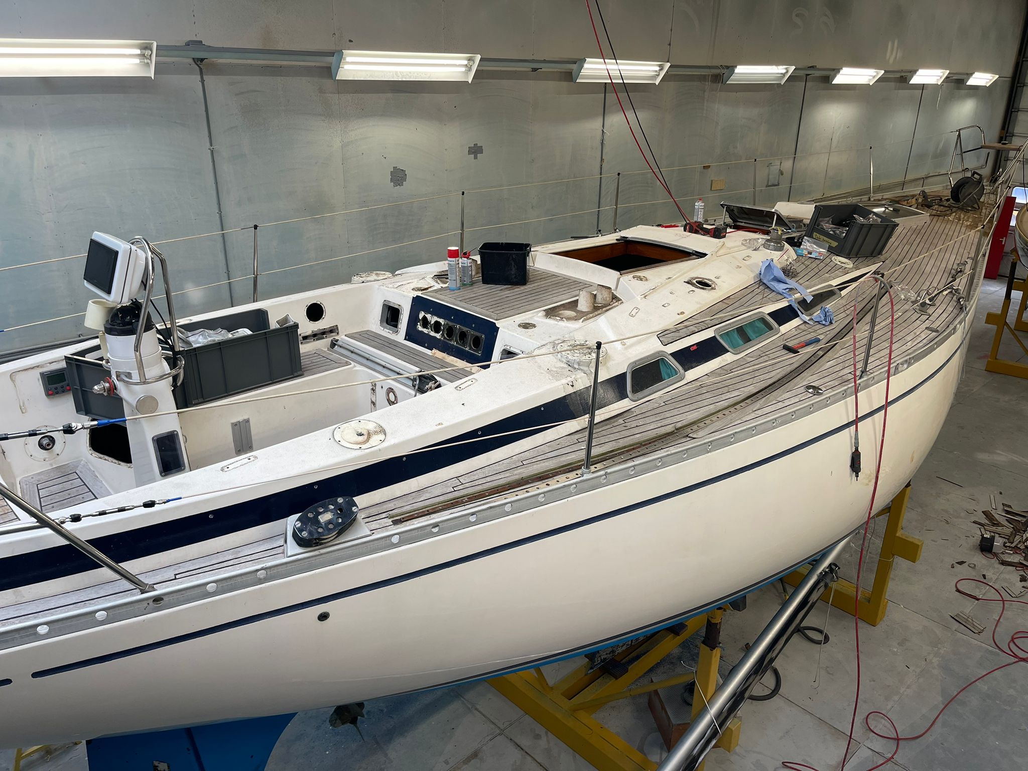 This Swan 41, built in 1974, is celebrating her 50th anniversary with a well-deserved transformation. A new teak deck and a complete exterior repaint will restore her to her former glory.